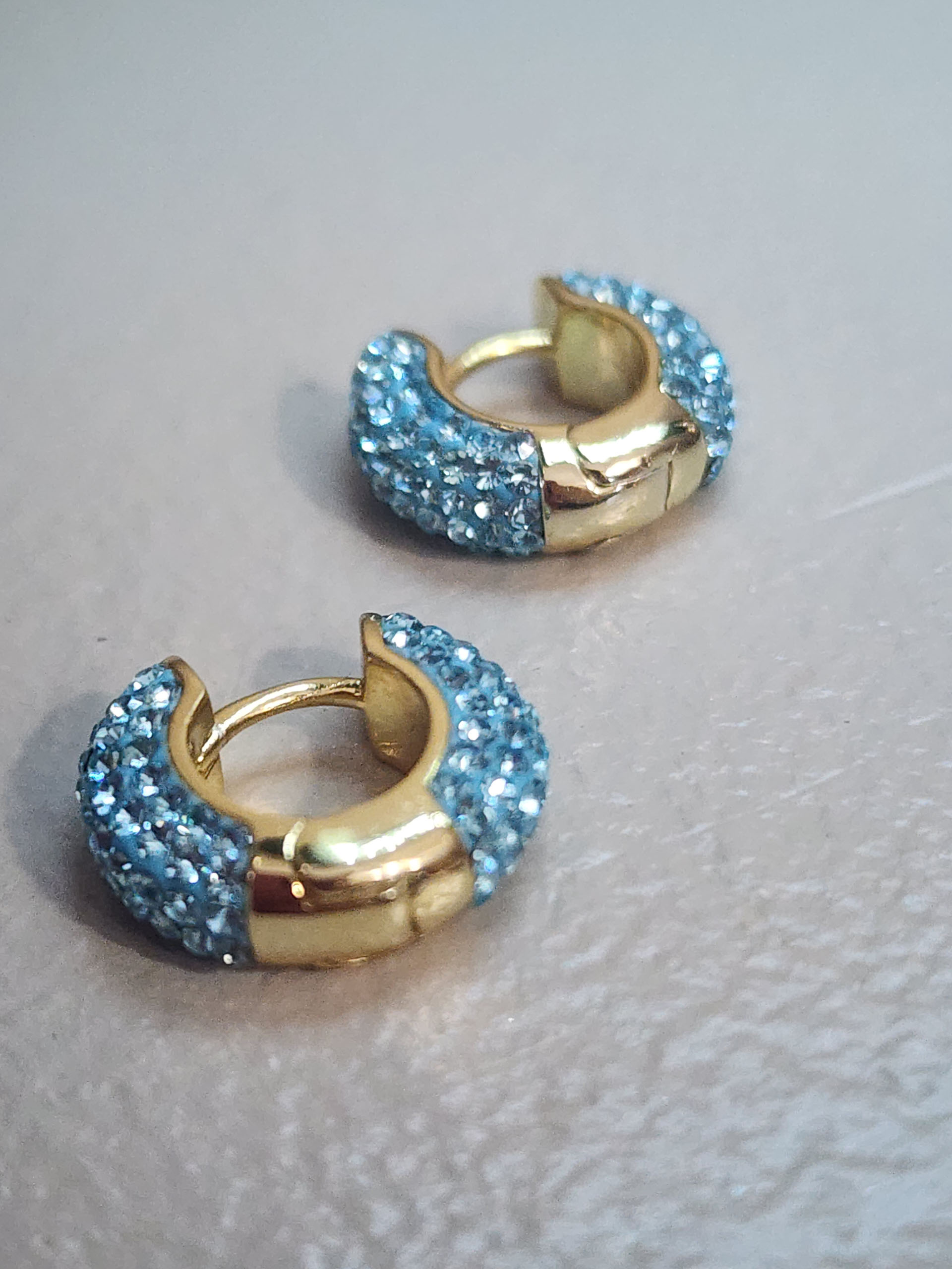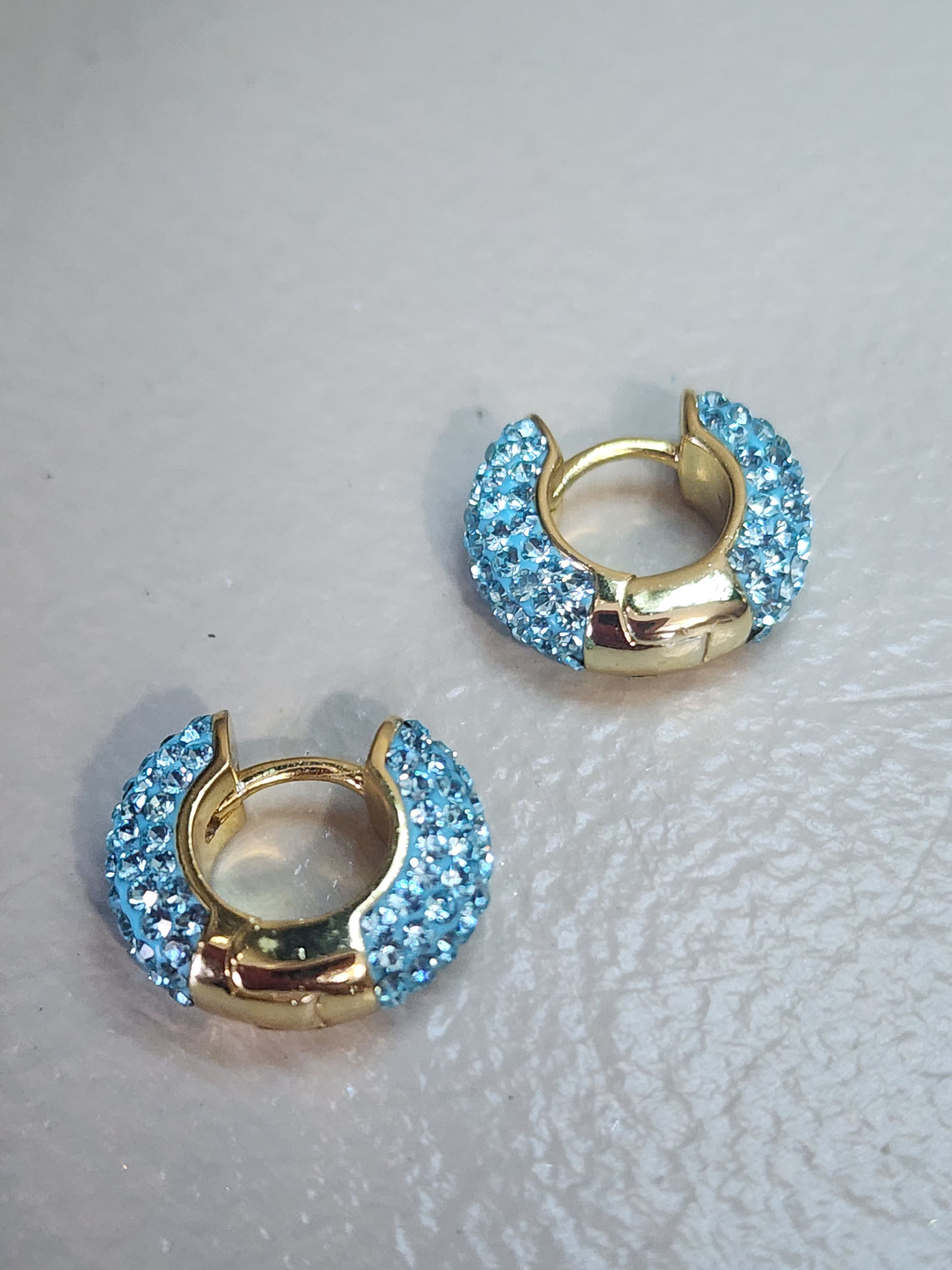 The Ocean Blue Mini Crystal Ball Earrings are a stunning addition to any jewelry collection. These 15mm crystal balls shimmer in a serene ocean blue | making them a perfect choice for adding a pop of color to your outfit. Set on sterling silver | these waterproof earrings are both durable and elegant | offering a radiant sparkle that enhances both casual and formal looks. Dive into elegance with these ocean-inspired earrings.