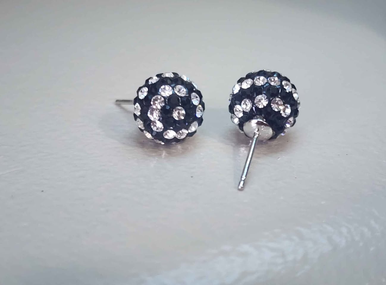 Silver & Black Swirl 10mm Crystal Ball Earrings
